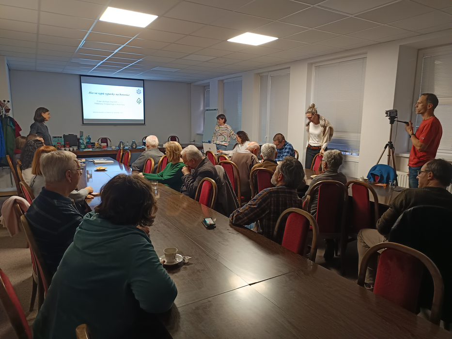Prezentovaná téma zaujala návštevníkov, ktorí pozorne sledovali prednášku a živo diskutovali aj po skončení podujatia. Jedného z účastníkov obzvlášť zaujala informácia o výskyte huby v jeho rodisku v Litave, prítomná lekárka zas ocenila, že mohla porovnať podmienky vzniku a rozvoja chorôb spôsobených hubami na drevinách s rozvojom chorôb v humánnej medicíne. Chcela sa viac dozvedieť o prevencii chorôb spôsobených hubovými patogénmi. K. Adamčíková ozrejmila, že je potrebné hlavne odstraňovať napadnuté ihličie, používať zdravý sadbový materiál a vyhýbať sa rizikovým druhom borovíc v mestách. Pri červenej sypavke to platí predovšetkým pre borovicu čiernu a borovicu horskú.