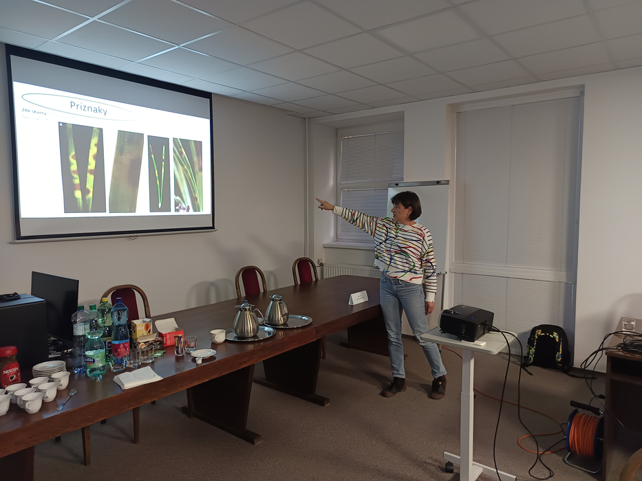 Veľkú časť svojej prezentácie venovala príznakom prítomnosti húb na drevinách. Pri červenej sypavke sa na ihliciach dajú rozoznať drobné červené až krvavé pásy, ktoré sú v začiatkoch nákazy žlté, postupne hnednú a opadávajú. Pri hnedej sypavke pásy na napadnutých ihliciach nie sú priečne, a pre sypavku mramorovú je typické žltohnedé mramorovanie na ihliciach. K. Adamčíková ozrejmila geografické rozšírenie sypaviek v rámci sveta i Slovenska, typy výsadieb, kde boli zistené, a venovala sa aj ich hostiteľským drevinám. Informovala, že ako súčasť výskumu vypestovali z napadnutých ihlíc čisté kultúry. Skúmali ich mikroskopicky i molekulárne s cieľom stanoviť diverzitu húb. Jednotlivé hubové druhy dokážu presne identifikovať na základe skúmania DNA. Genetické analýzy poskytli dôkazy o tom, že Dothistroma septosporum, ako jedna z dvojice druhov spôsobujúcich červenú sypavku, je na Slovensku už dlhodobo prítomná. Priaznivé podmienky pre jej šírenie predstavuje teplé a vlhké počasie. Prvýkrát bola zaznamenaná v Rusku v roku 1911, na Slovensku bolo ochorenie potvrdené na lokalite v Modrom Kameni v roku 1996. Od roku 2013 do 2020 výskumný kolektív preskúmal na Slovensku 89 lokalít s cieľom zistiť napadnutie drevín červenou sypavkou. Najviac boli ochorením postihnuté borovice. V menšej miere ako Dothistroma septosporum sa na Slovensku šíri červená sypavka zapríčinená druhom Dothistroma pini. K. Adamčíková informovala, že záznam o výskyte tohto patogénu na zistených druhoch drevín v SR bol prvým na svete. Na Slovensku jej výskyt predstavuje severnú hranicu rozšírenia. Výsledky výskumu publikovala so svojím kolektívom vo vedeckej literatúre, najmä časopisoch, čo počas svojej prezentácie aj dokumentovala. Hneď na jej začiatku zdôraznila, že predstavený výskum je výsledkom spoločnej práce celého kolektívu. Niektoré jeho členky, Dr. Emília Ondrušková a Dr. Katarína Pastirčáková, sa podujatia osobne zúčastnili.
